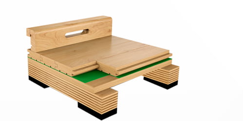 雙層龍骨結構——(專業比賽之選)符合德國DIN標準,彈性、吸震性良好,適用于大型比賽場館
